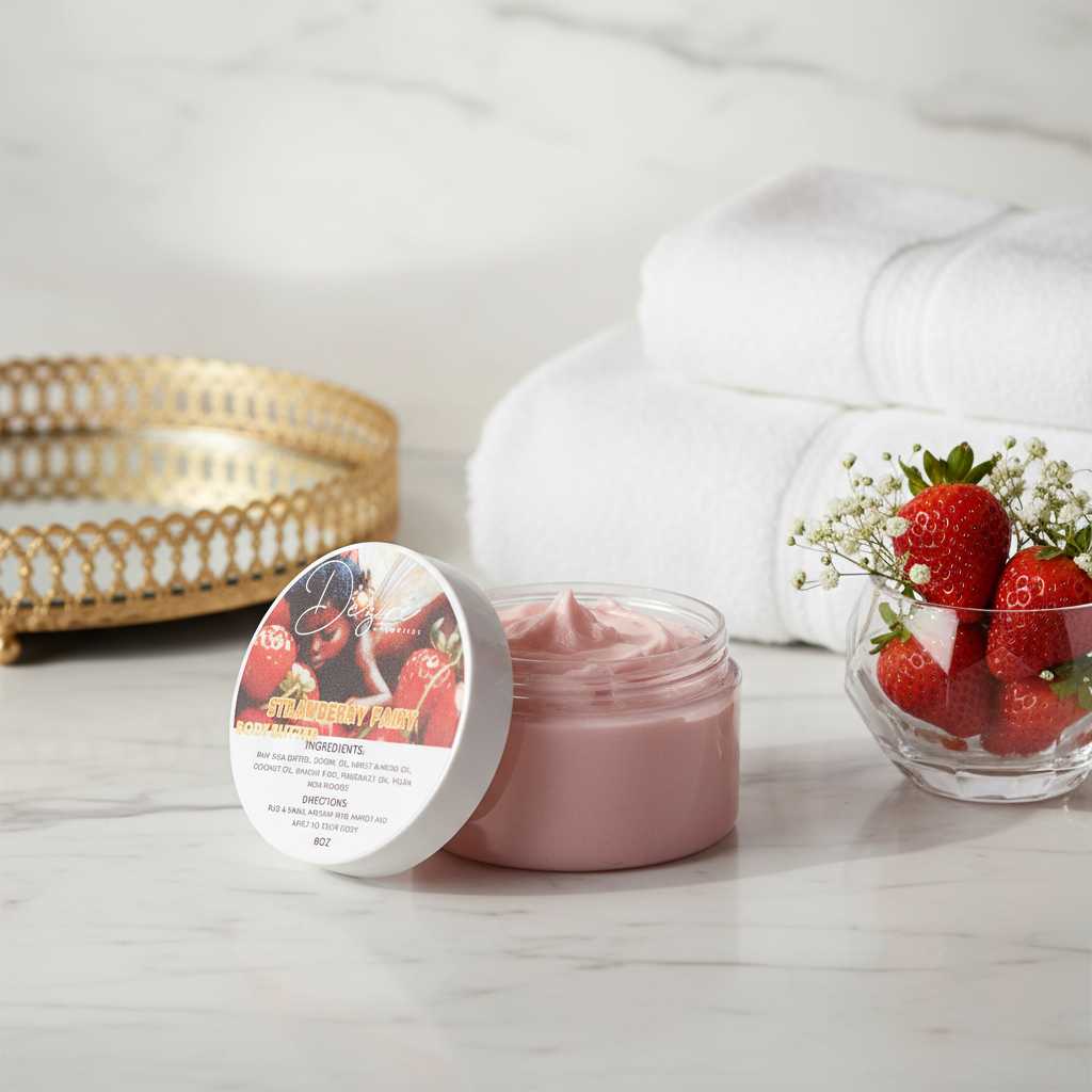 Strawberry Fairy Body Butter envelops your skin in a luxuriously smooth, creamy formula infused with a captivating strawberry fragrance. This expertly crafted blend combines strawberry, citrus, peach, and lemon with subtle sugar and musk notes, creating a warm, comforting sensory experience. The sophisticated scent profile delivers both sweetness and depth, making it an essential addition to your daily skincare ritual. Perfect for those seeking a nourishing body butter that combines indulgent texture with a memorable fragrance journey.